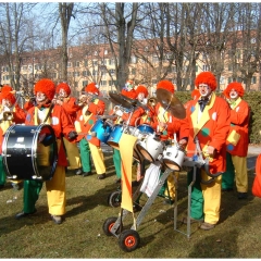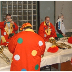 Rosenmontag war Clowntag: Auftritt bei den Mooser Rettich.