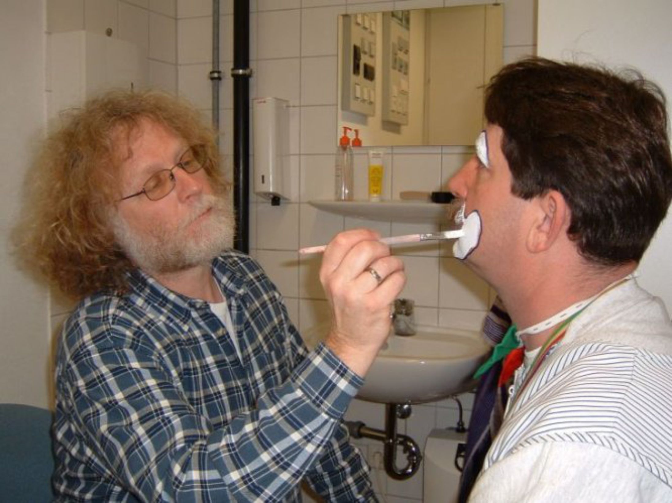Rosenmontag: Die Musiker mussten für den langen Tag geschminkt werden.