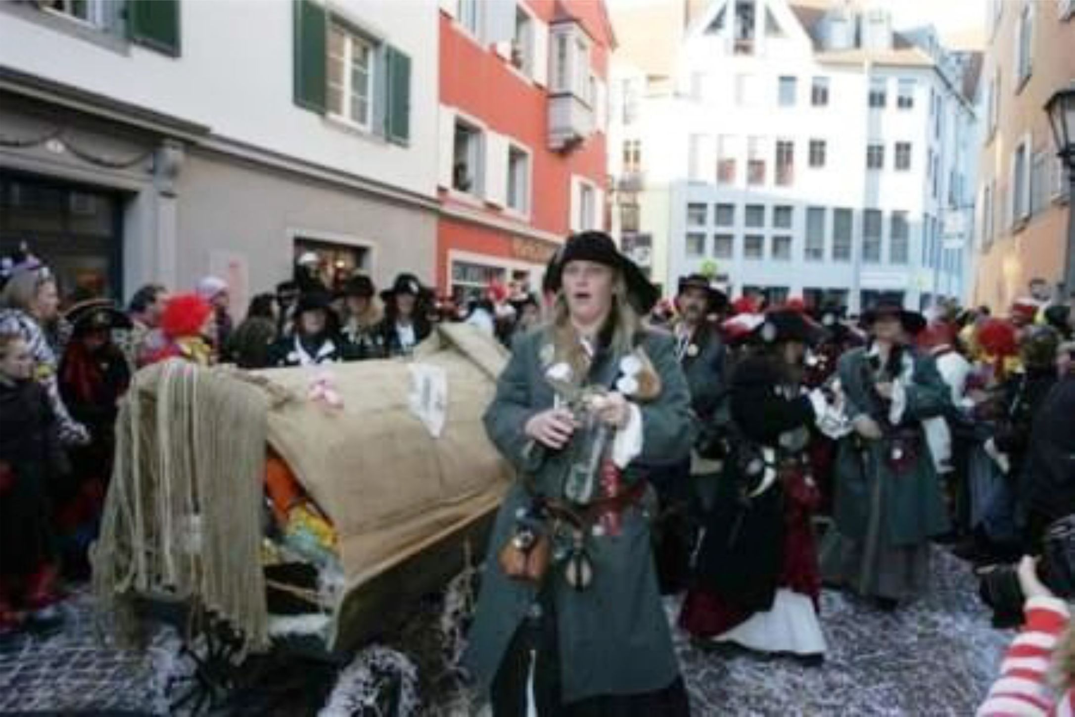 Umzug am Fasnachtssonntag: Elli Bischoff durfte im Schneeschreck-Auto mitfahren.
