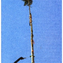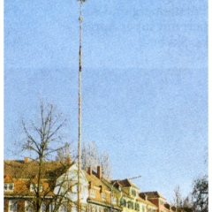 Narrenbaumfällen am Gottmannplatz: Diese wurde mit einem Kran bis über den Schwerpunkt raufgezogen.