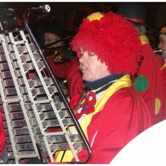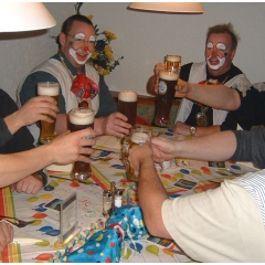 Rosenmontag war Clowntag: Zwischendurch legte man eine Essenspause in Überlingen am Ried ein.