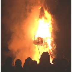 Verbrennung auf dem Stephansplatz: Der Schneeschreck am Feuer.