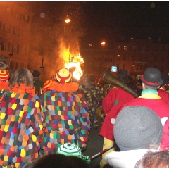 Verbrennung auf dem Stephansplatz: Die Clowngruppe spielte zum Abschluß.