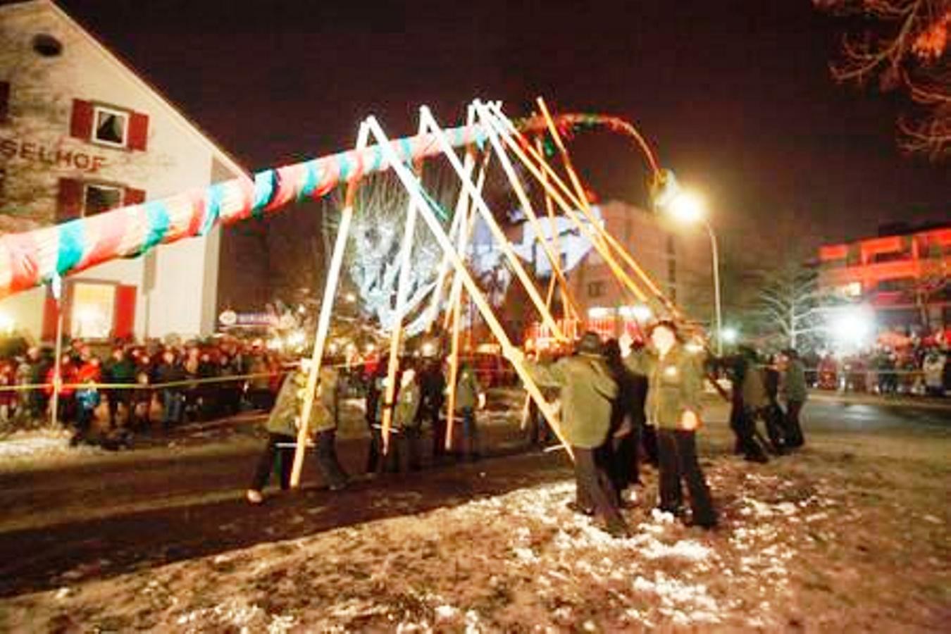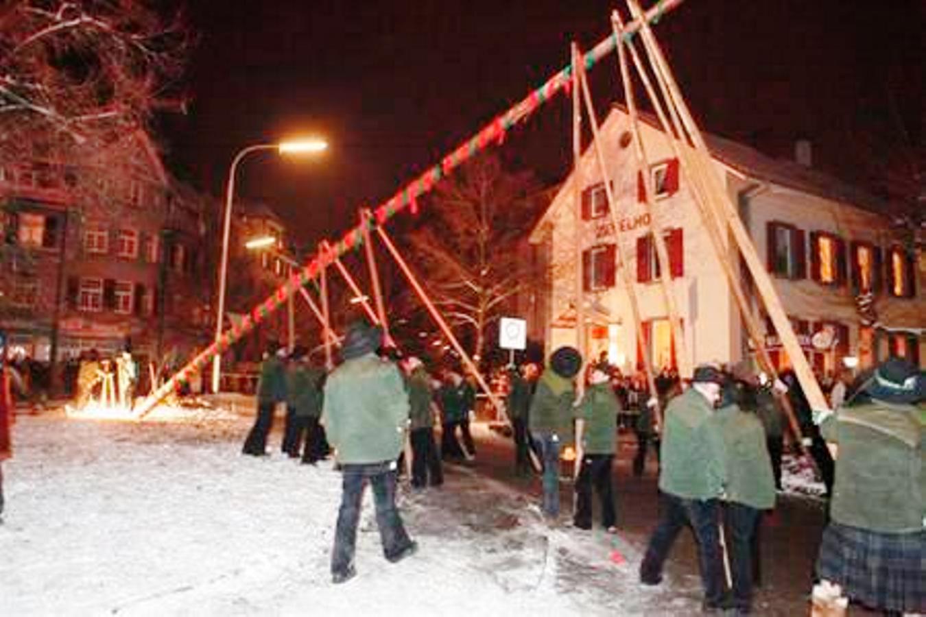 Narrenbaumstellen auf dem Gottmannplatz: Der Baum wurde wieder von den Allensbacher Holzern gestellt.