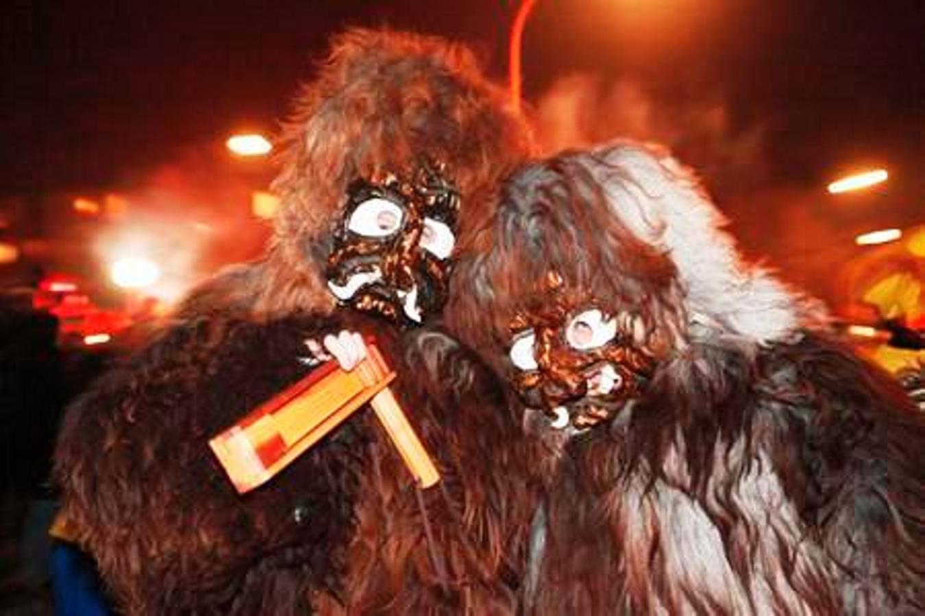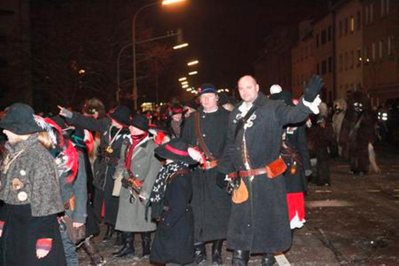 Narrenbaumstellen auf dem Gottmannplatz: Gefolgt vom Schneckenbürgler Räuber.