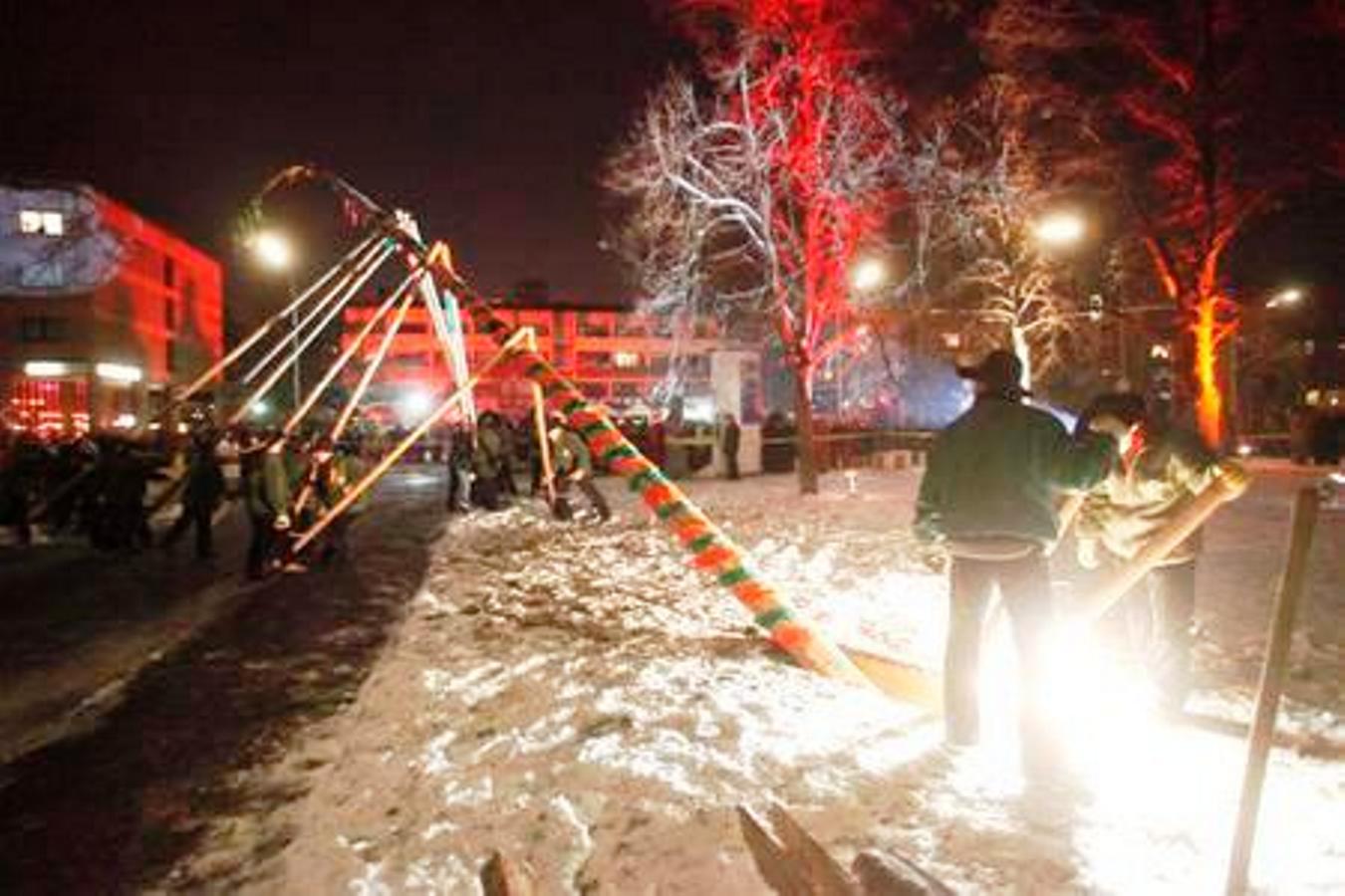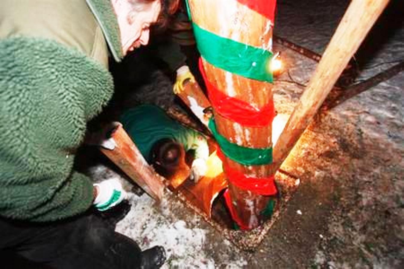 Narrenbaumstellen auf dem Gottmannplatz: Und wieder einmal war es geschafft.