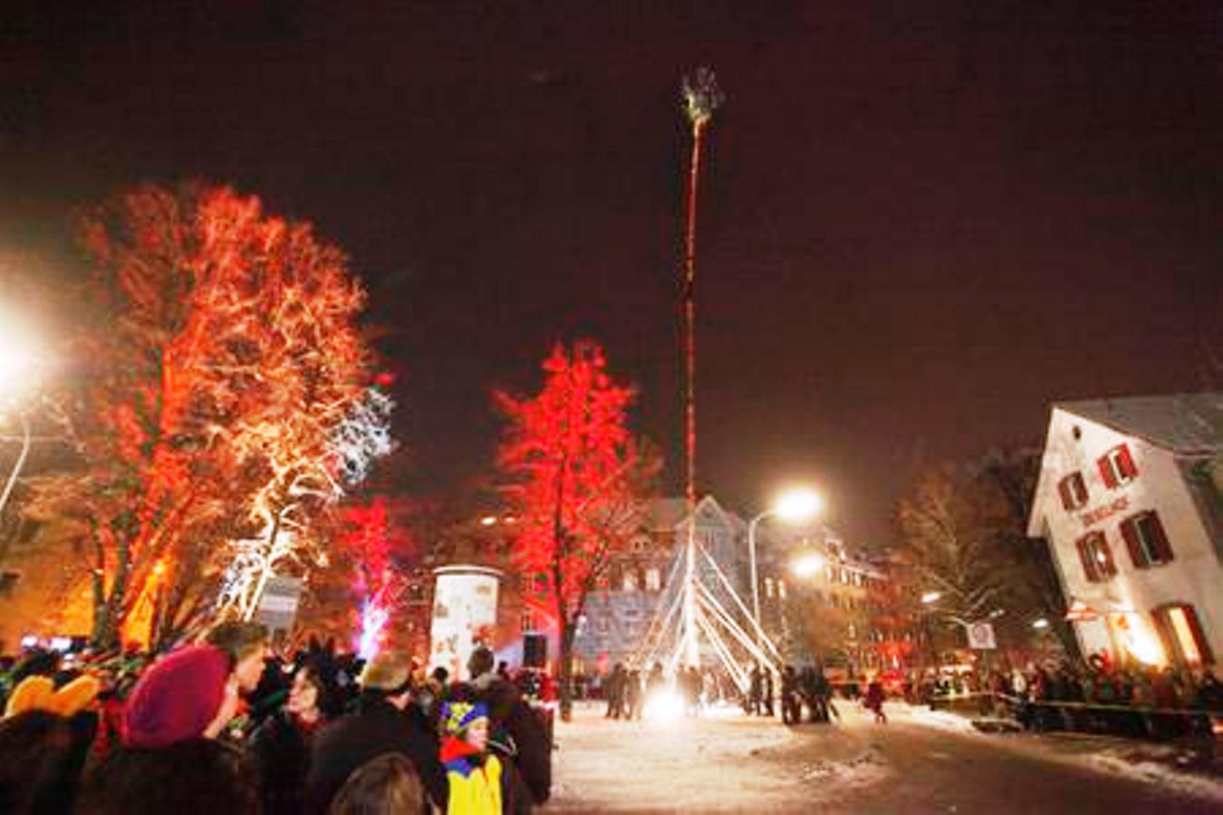 Narrenbaumstellen auf dem Gottmannplatz: Nach dem Stellen des Baumes gab es noch ein kleines Feuerwerk.