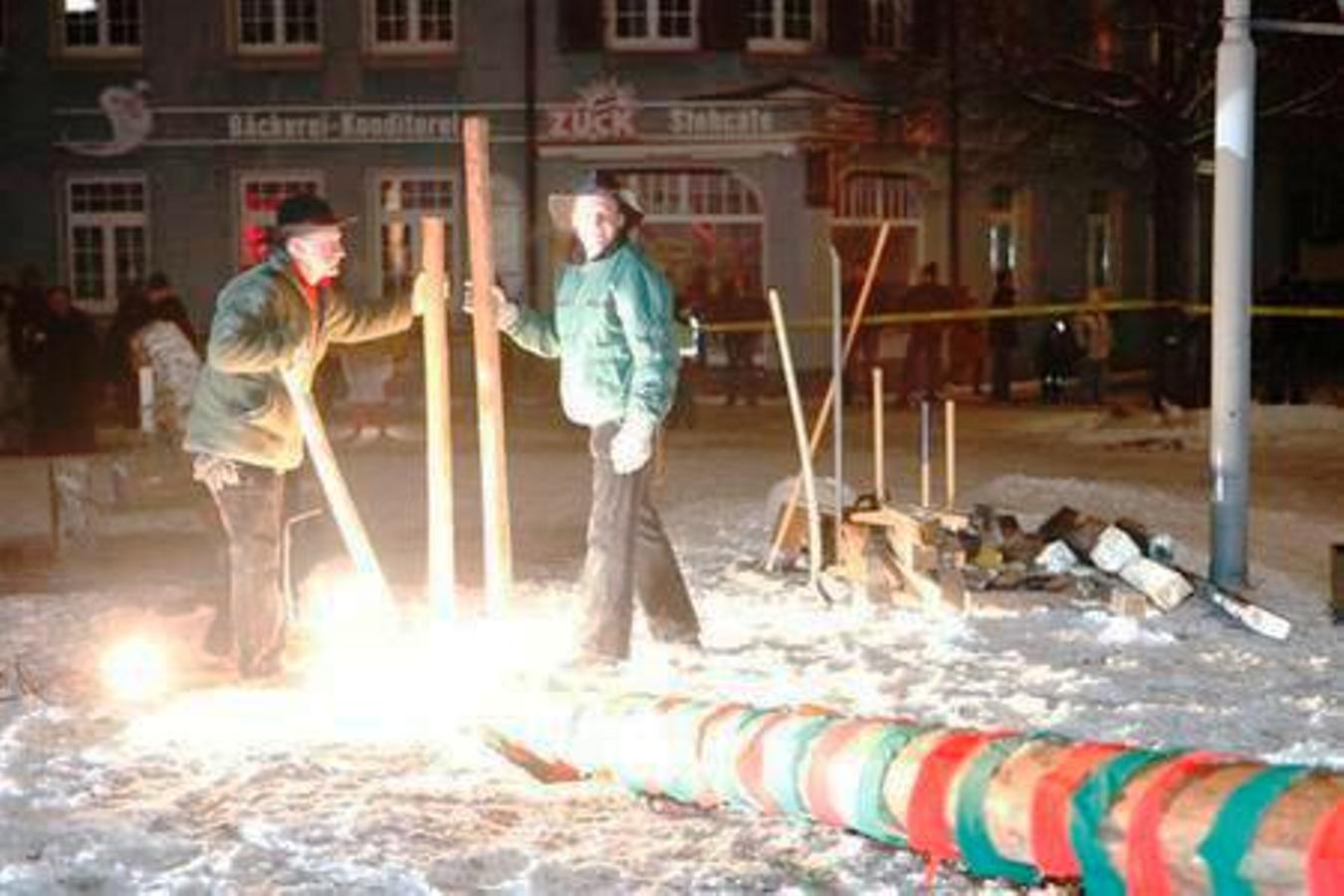 Narrenbaumstellen auf dem Gottmannplatz: Bernhard Kleiser von den Holzern konnte zufrieden sein.