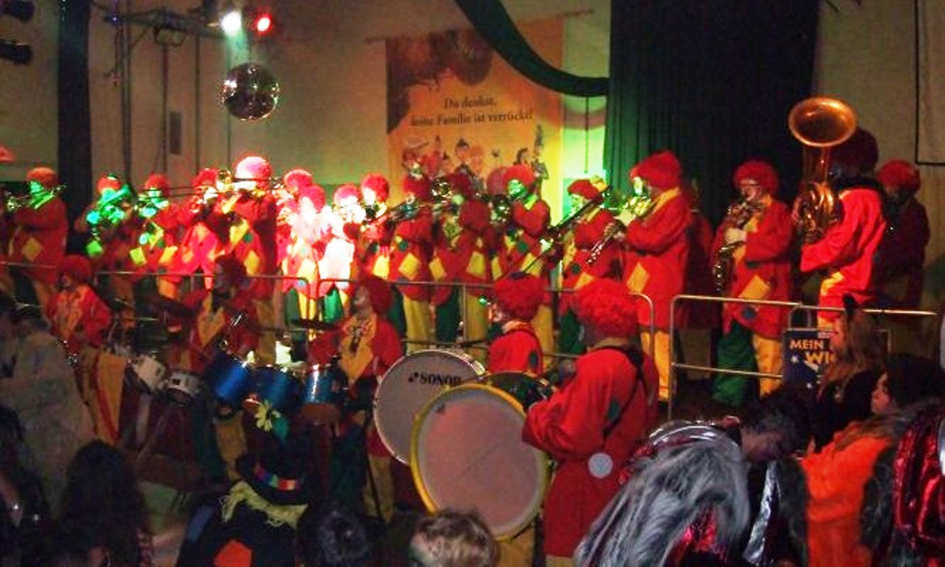 Rosenmontag mit der Clowngruppe: Weiter ging es in die Halle nach Rielasingen.
