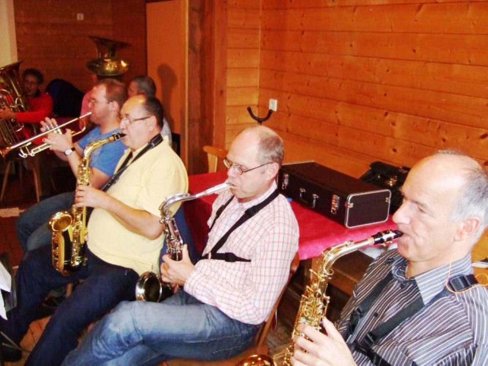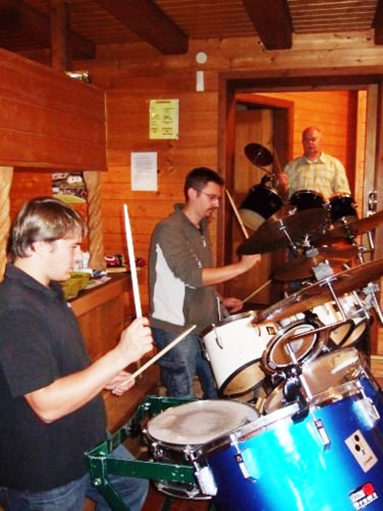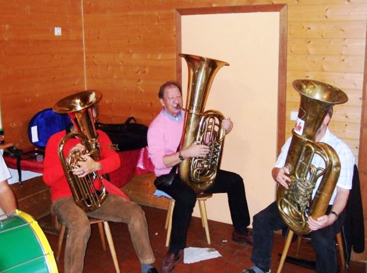 11.11. in der Linde: Zuerst kam der Fanfarenzug mit Petra Bruderhofer, Dominik Fritzsche, Bastian Deutinger und Jörg Deicher.