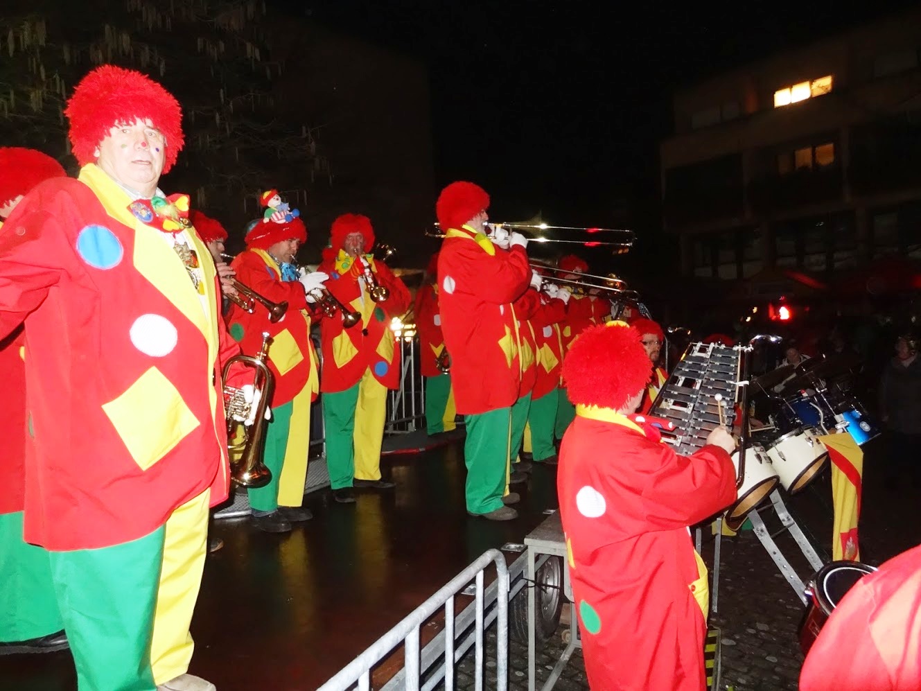 Narrenbaumstellen auf dem Gottmannplatz: Die Clowngruppe spielte noch bis die Lichter ausgingen.