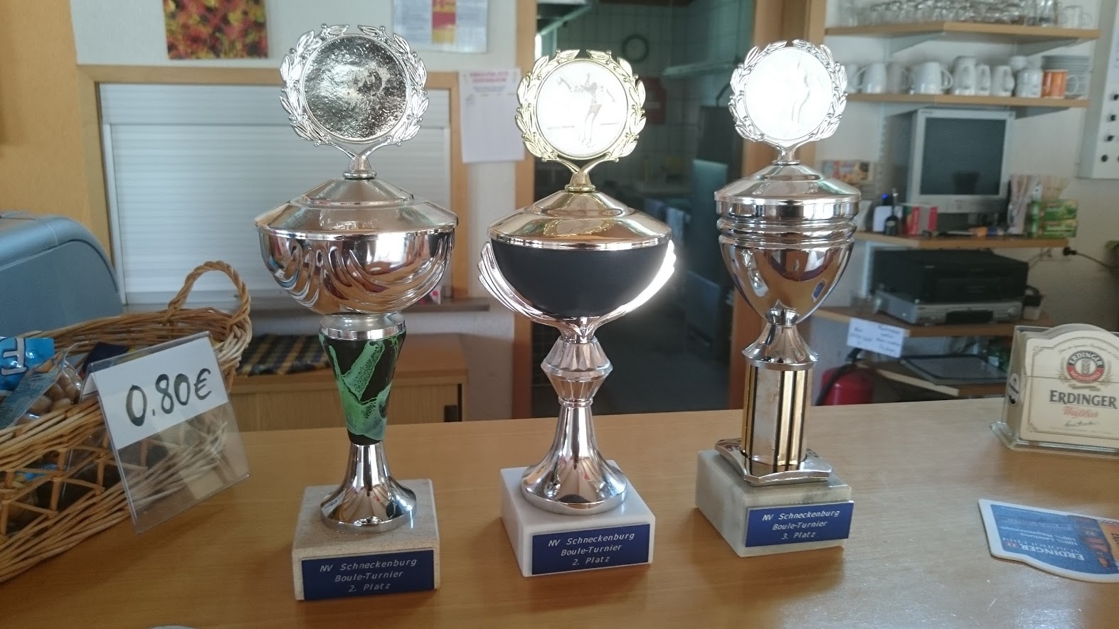 Boule-Turnier der Schneckenburg: Um diese Pokale wurde an diesem Nachmittag heiß gekämpft.