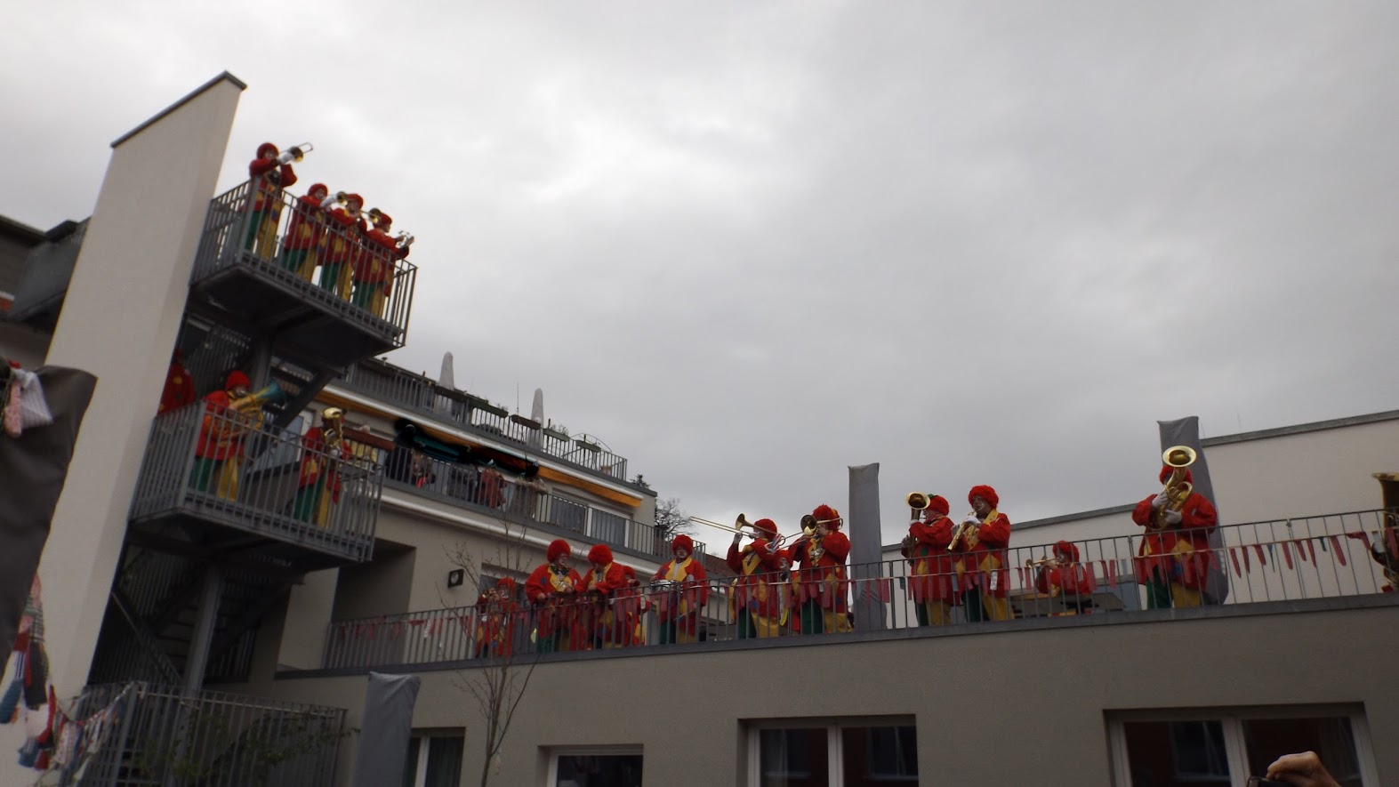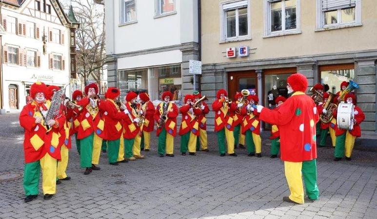 Rosenmontag mit der Clowngruppe: Vor dem Speckessen gab es noch ein Platzkonzert.