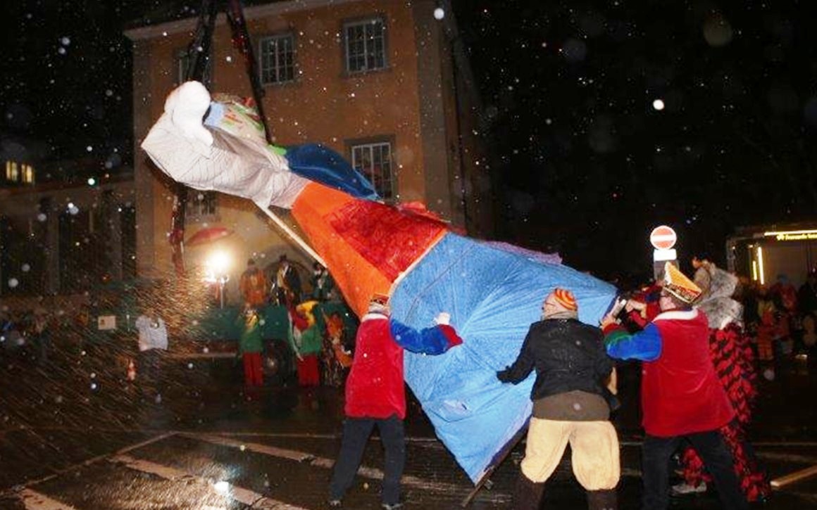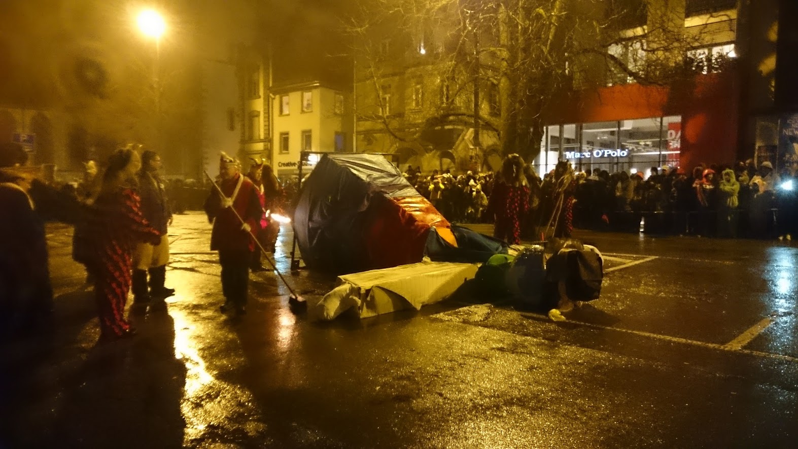 Verbrennung auf dem Stephansplatz: Wegen den schlechten Witterungsverhältnissen wurde die Puppe vor der Verbrennung abgelegt.
