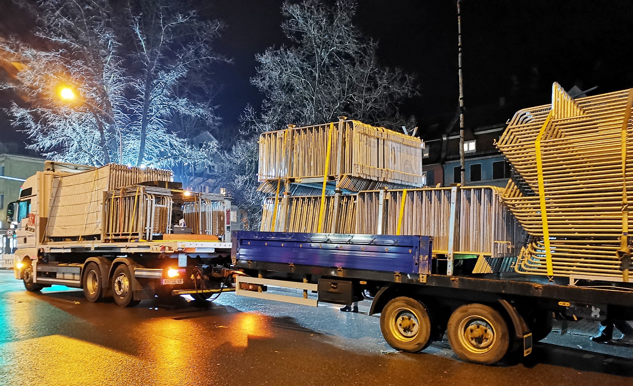 Narrenbaum Stellen auf dem Gottmannplatz: Am Ende der Veranstaltung mussten die Absperrgitter wieder versorgt werden.