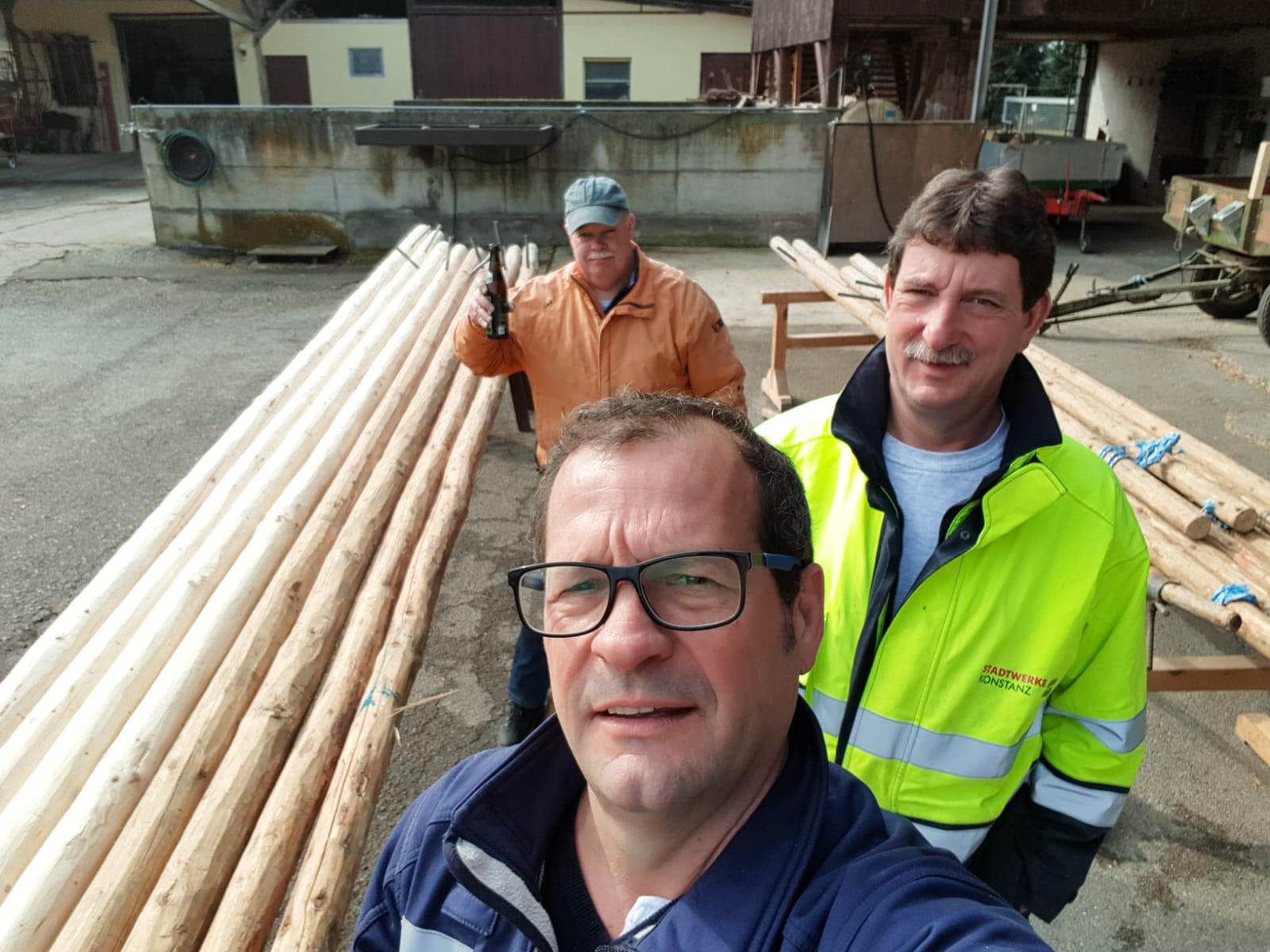 Narrenbaum Stellen auf dem Gottmannplatz: Am nächsten Morgen mussten die Schwalben wieder nach Allensbach gebracht werden.