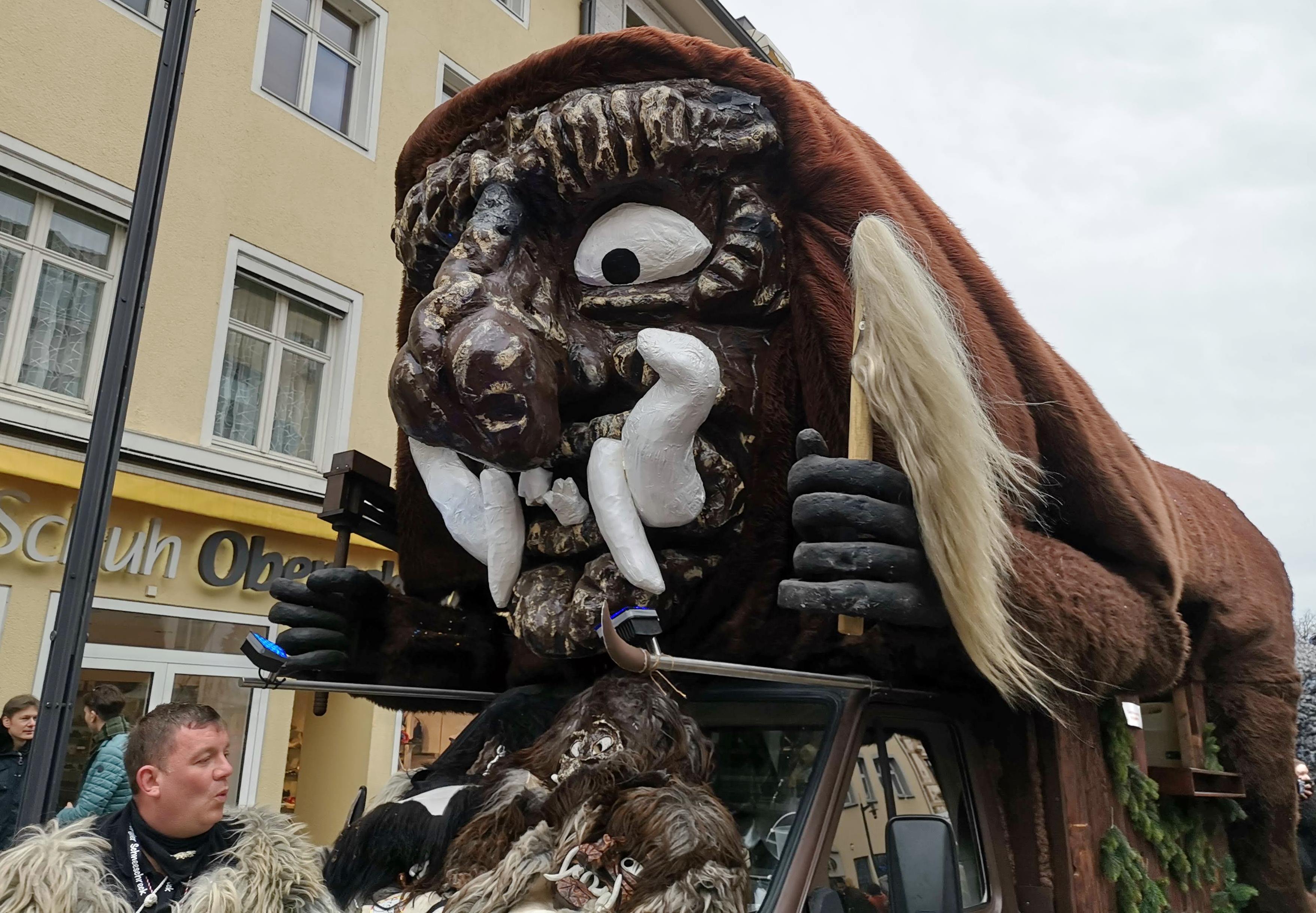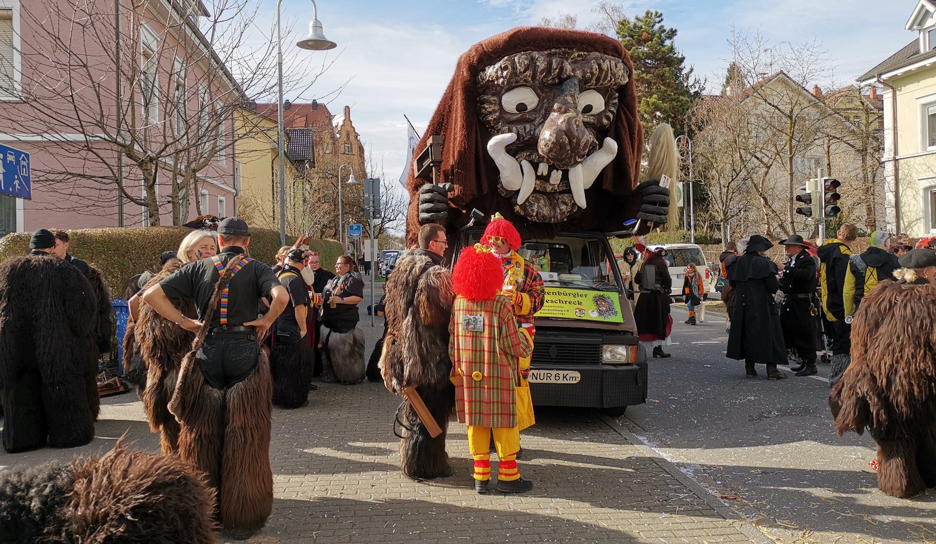 Umzug am Fasnachtssonntag: Der Schneeschreck lief vor dem Auto.