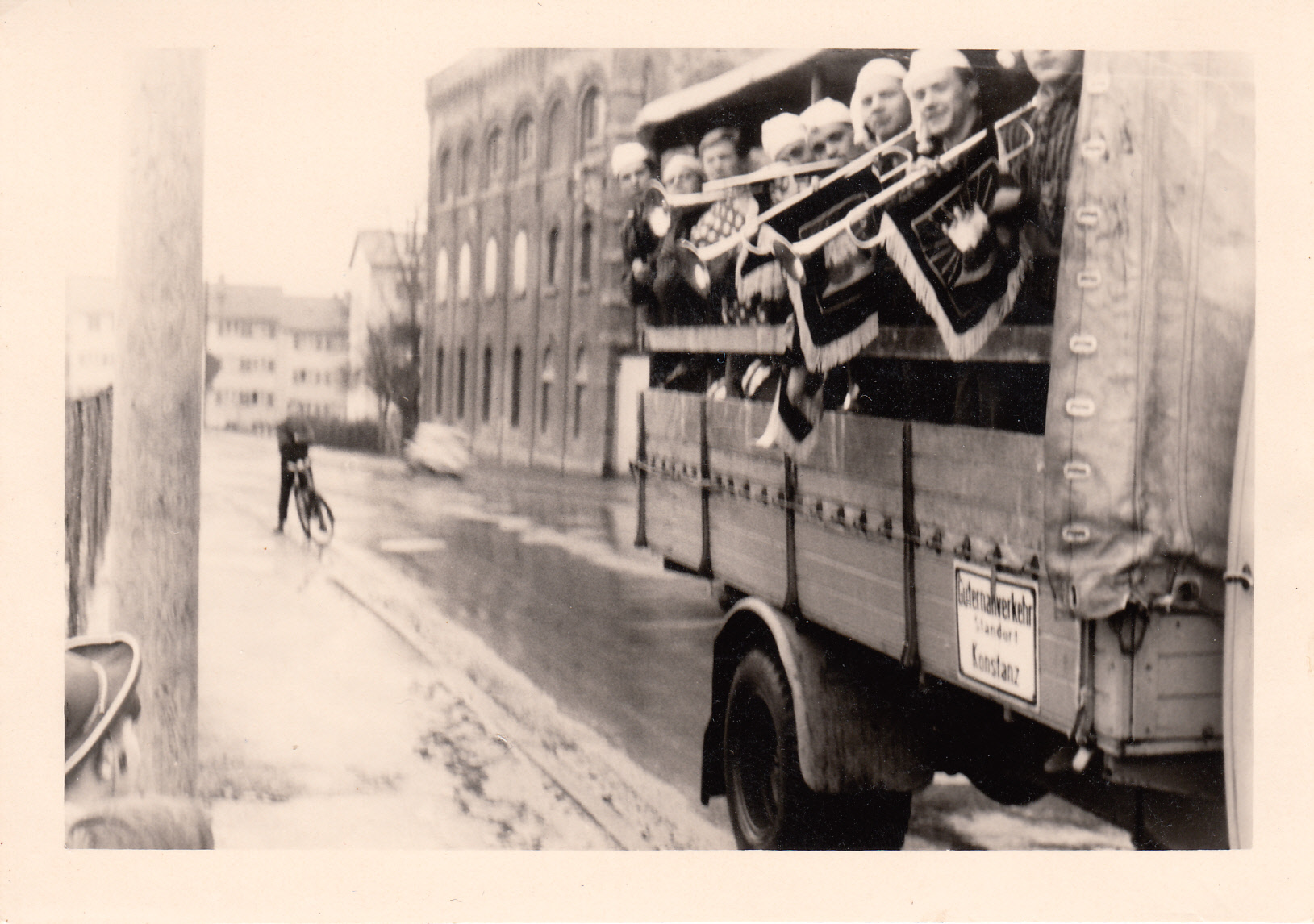 Schmutziger Donnerstag: Der Fanfarenzug vor der Gärtnerei Nübel.