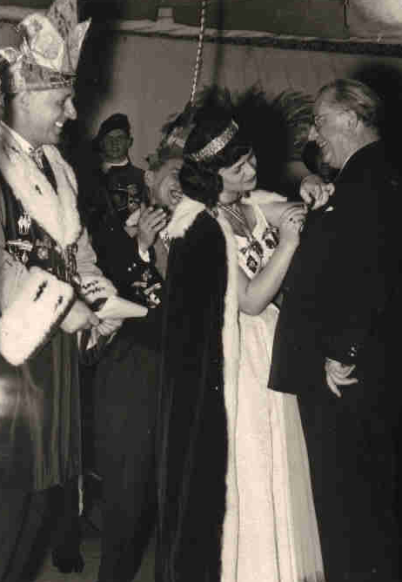 Schmutziger Donnerstag: Befreiung der Sonnenhalde-Schule durch die Schneckenburg. Präsident mit Prinzessin.