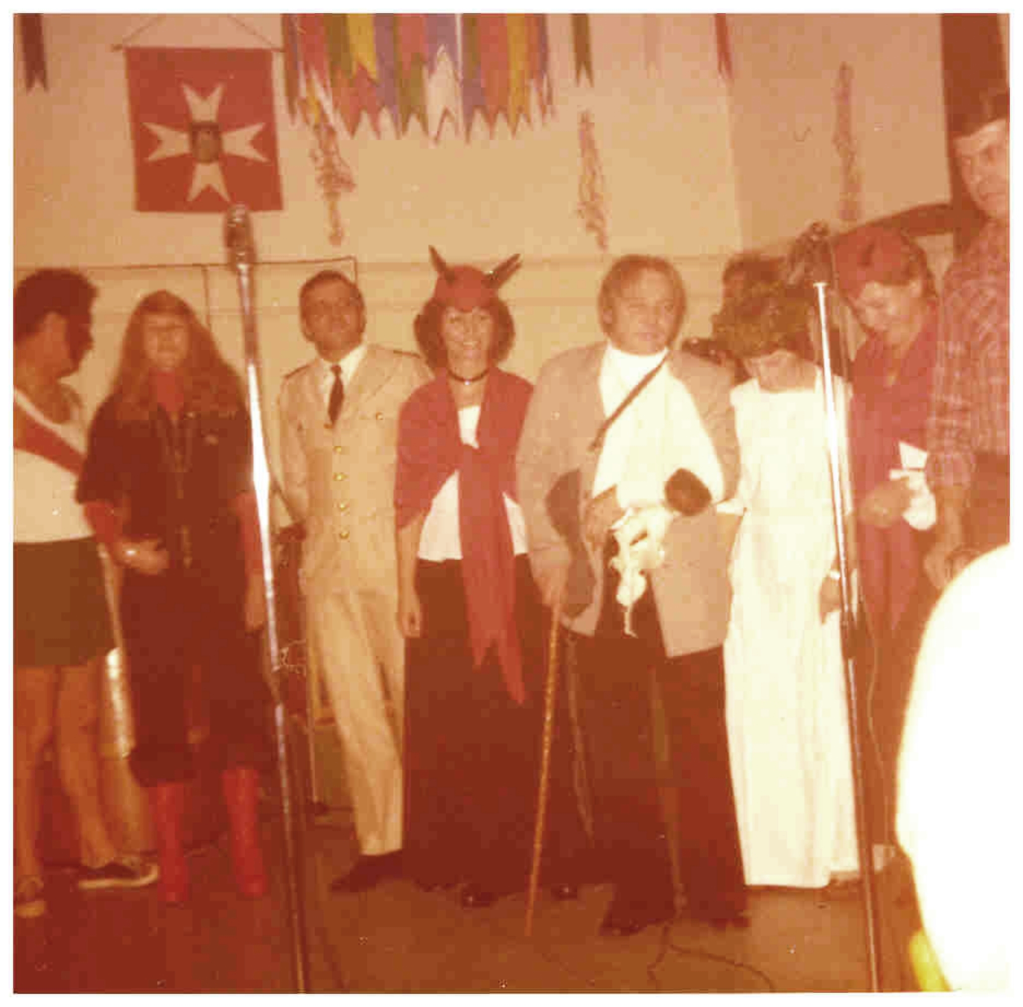 Eröffnung der neuen Fasnachtssaison im Ziegelhof: Mit Waltraut Schaer, Inge, Dieter und Walter Stöß, Marga und Wolfgang Theuerjahr, Gisela Vogt, Sigi Greis und Kurt Hofmeier.