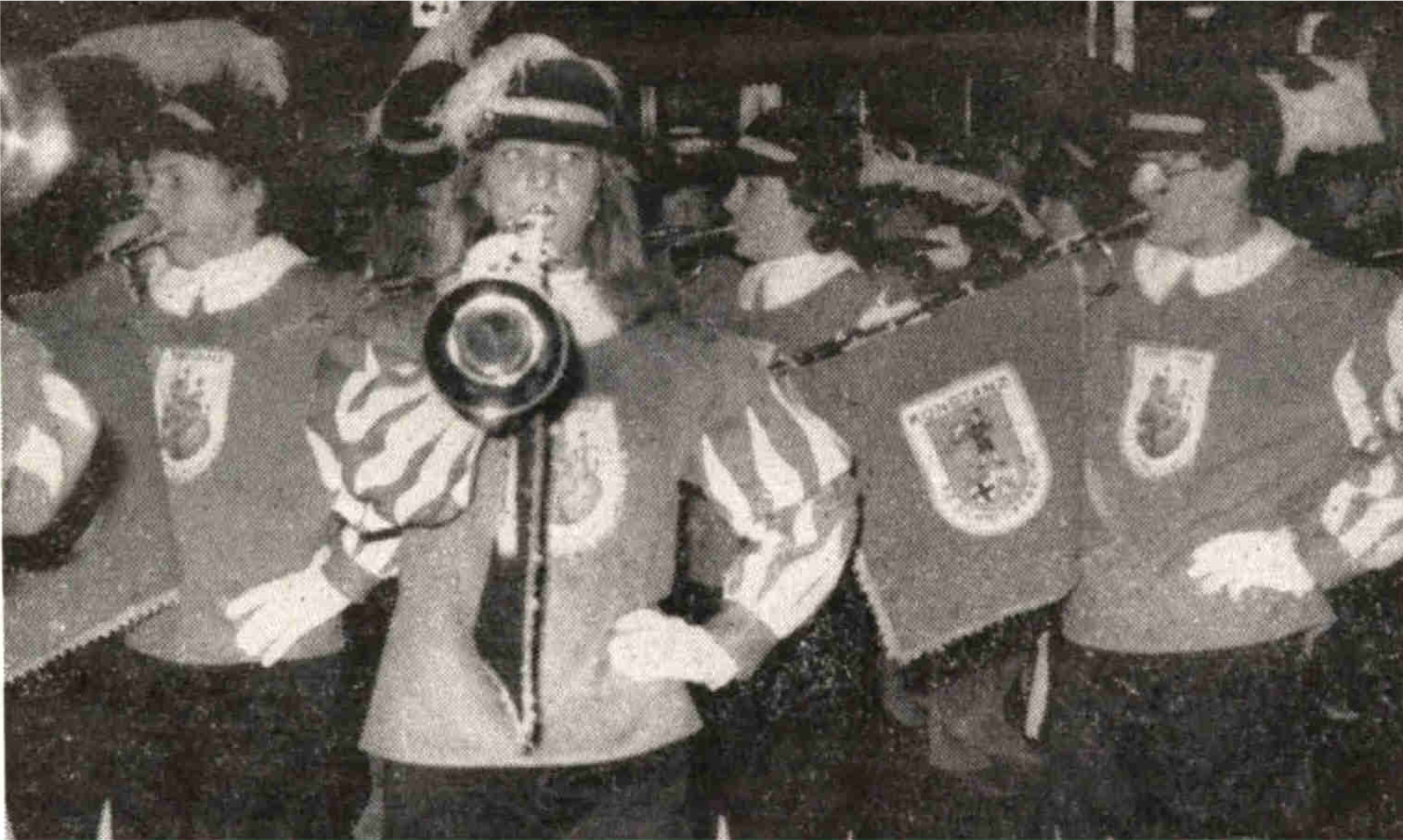Schmutziger Donnerstag: Der Fanfarenzug der Schneckenburg beim Narrenbaumsetzen auf dem Gottmannplatz.