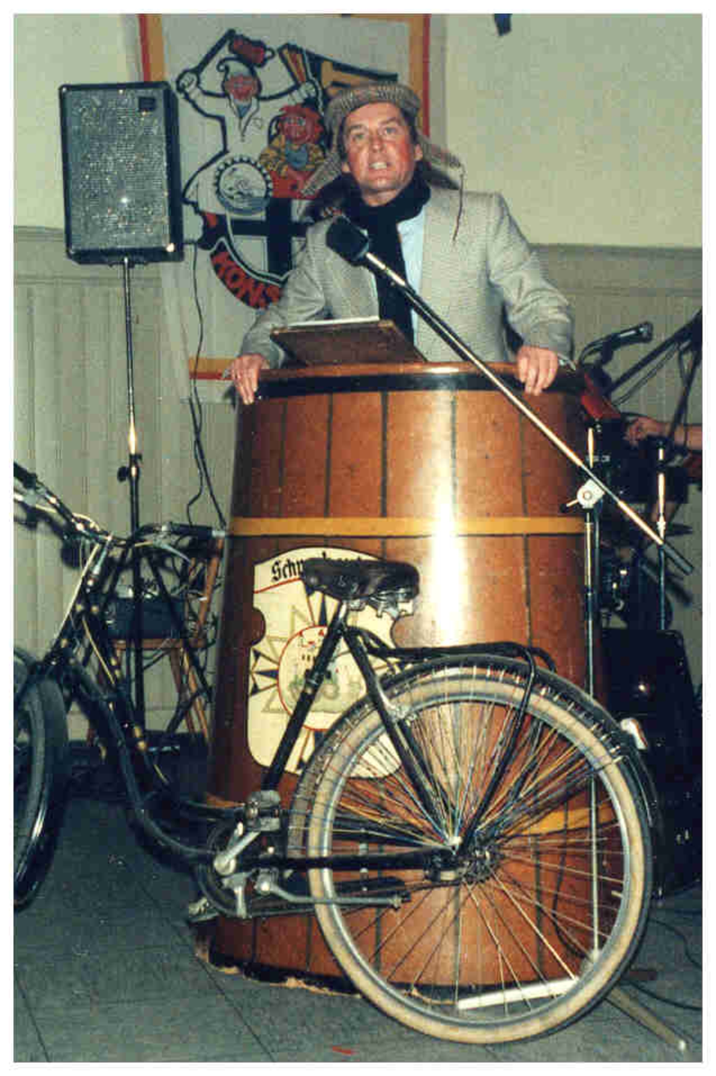 Fasnachtseröffnung im Ziegelhof: Rudi Deutinger als mürrischer Radfahrer in der Bütt.