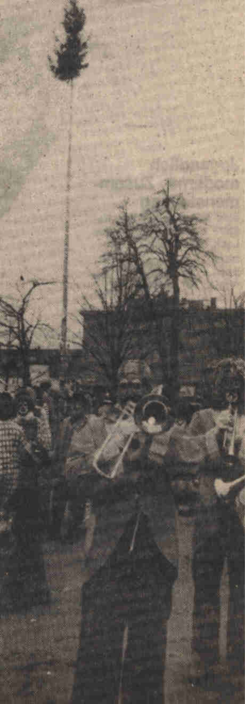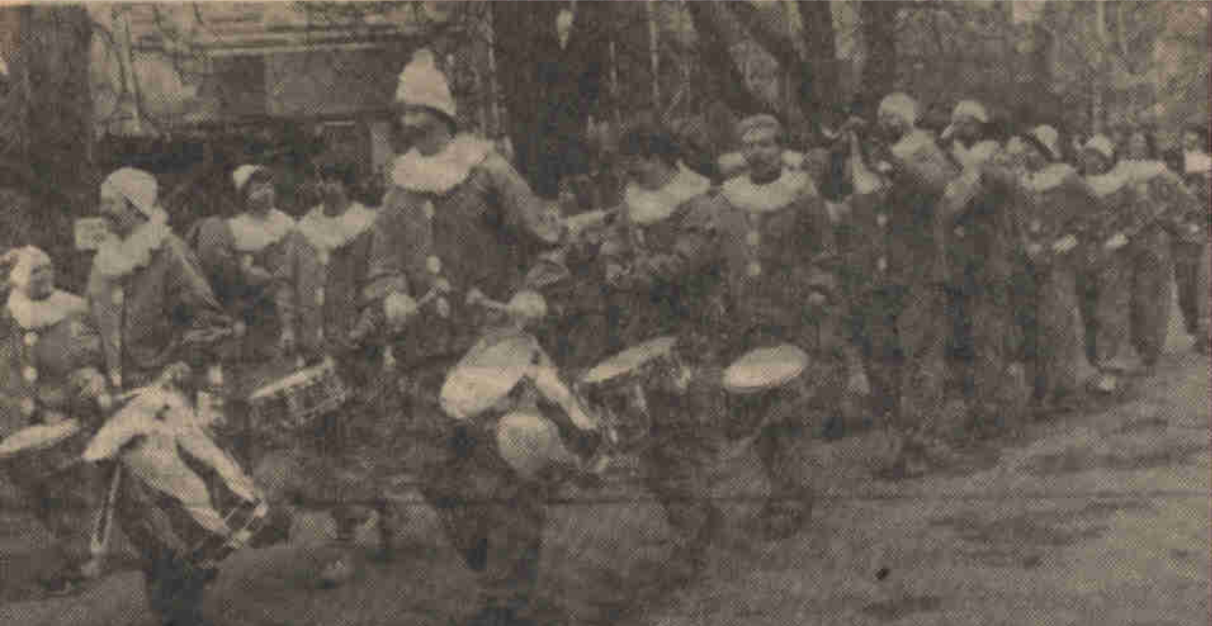 Schmutziger Donnerstag: Die Clowngruppe beim Narrenbaumstellen auf dem Gottmannplatz.