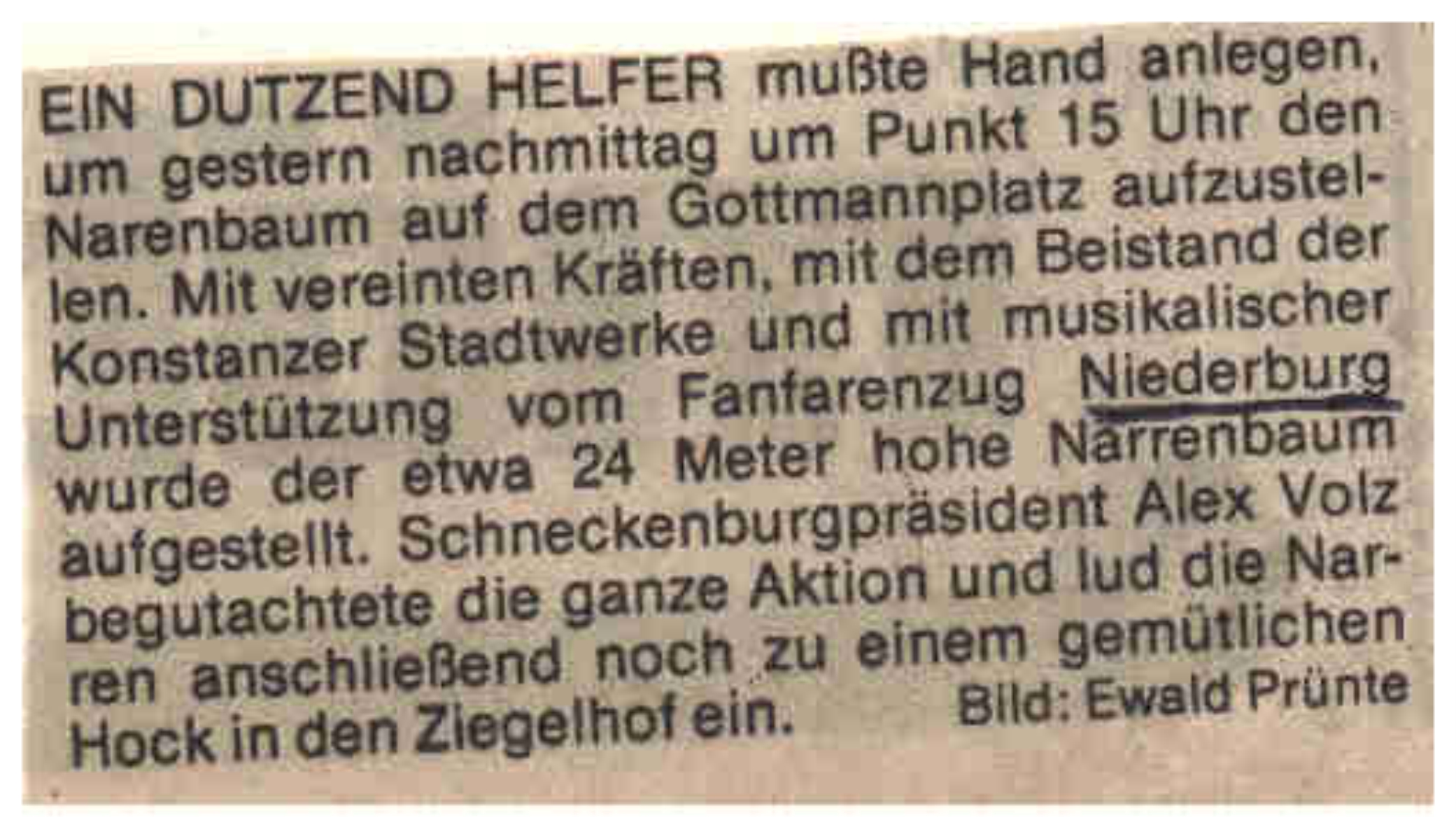 Schmutziger Donnerstag: Südkurier-Artikel mit falschem Namen des Fanfarenzuges.