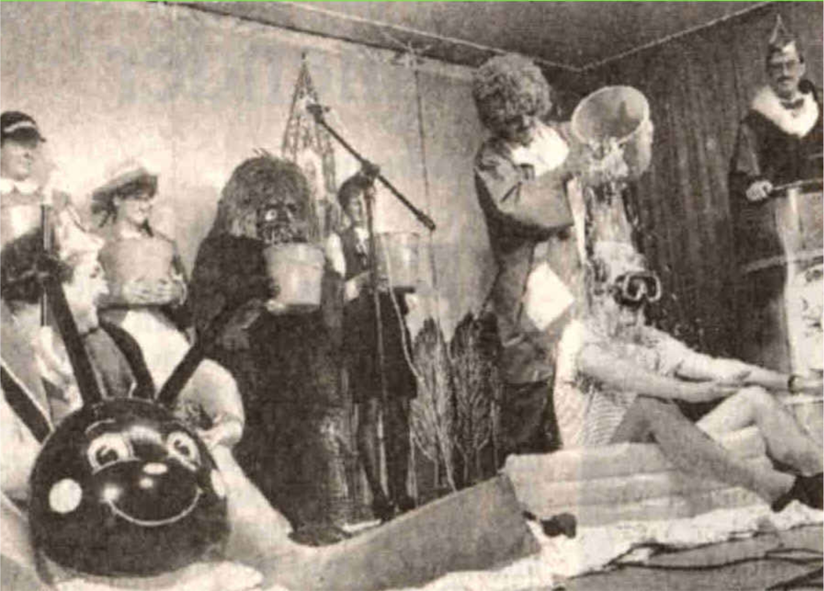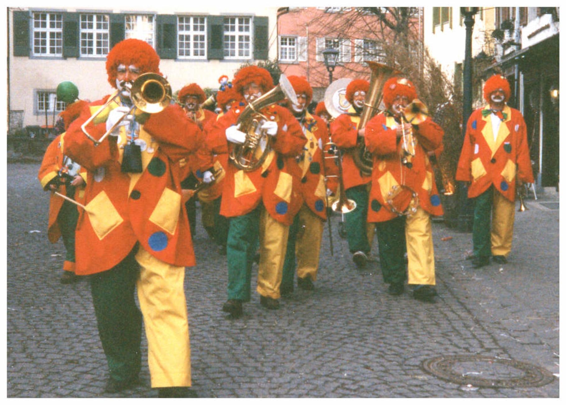 Die Clowngruppe am Rosenmontag in der Stadt.